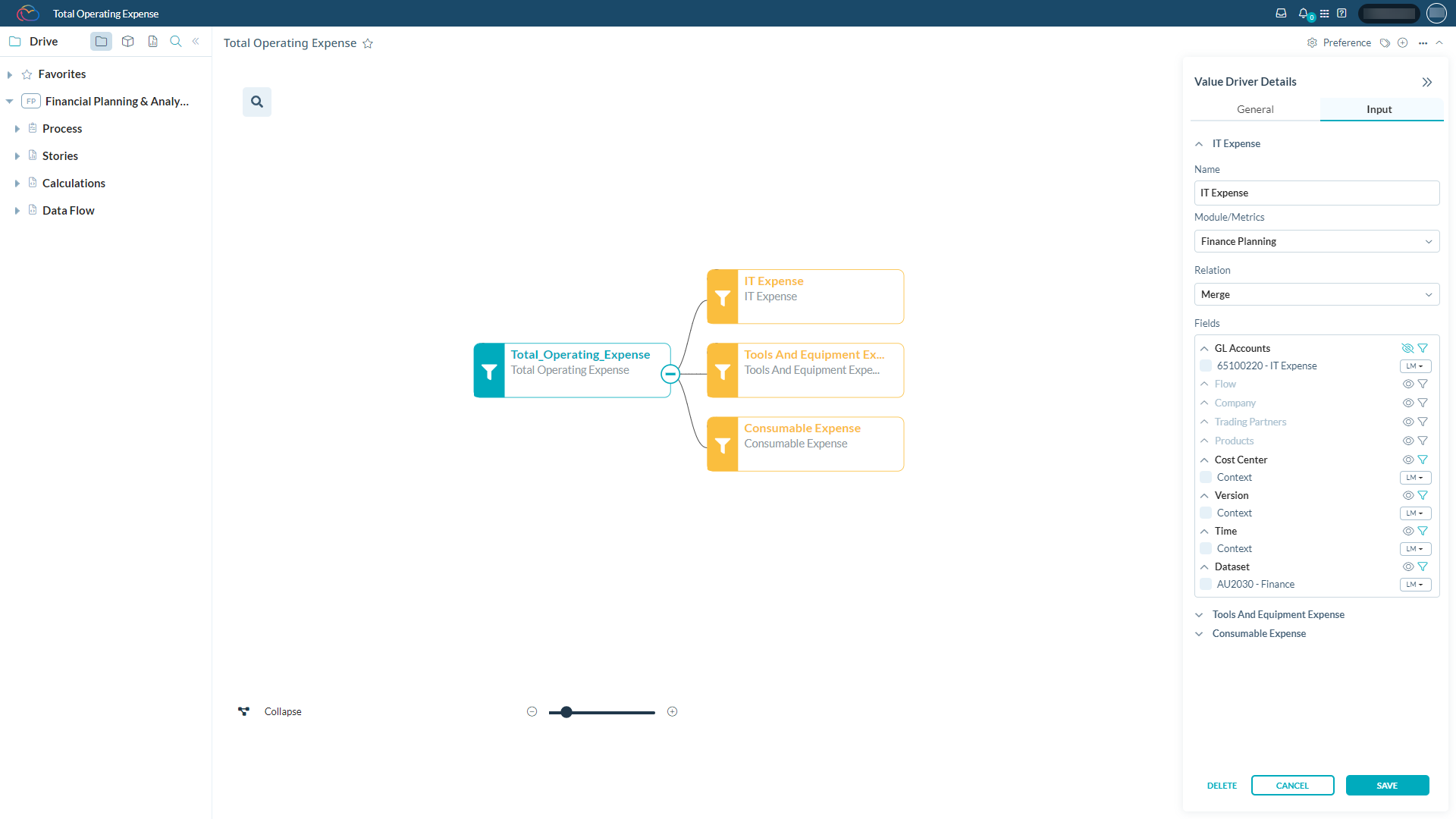 - Um eine neue Werttreiberstruktur zu erstellen, klicken Sie auf das Menü Drive: