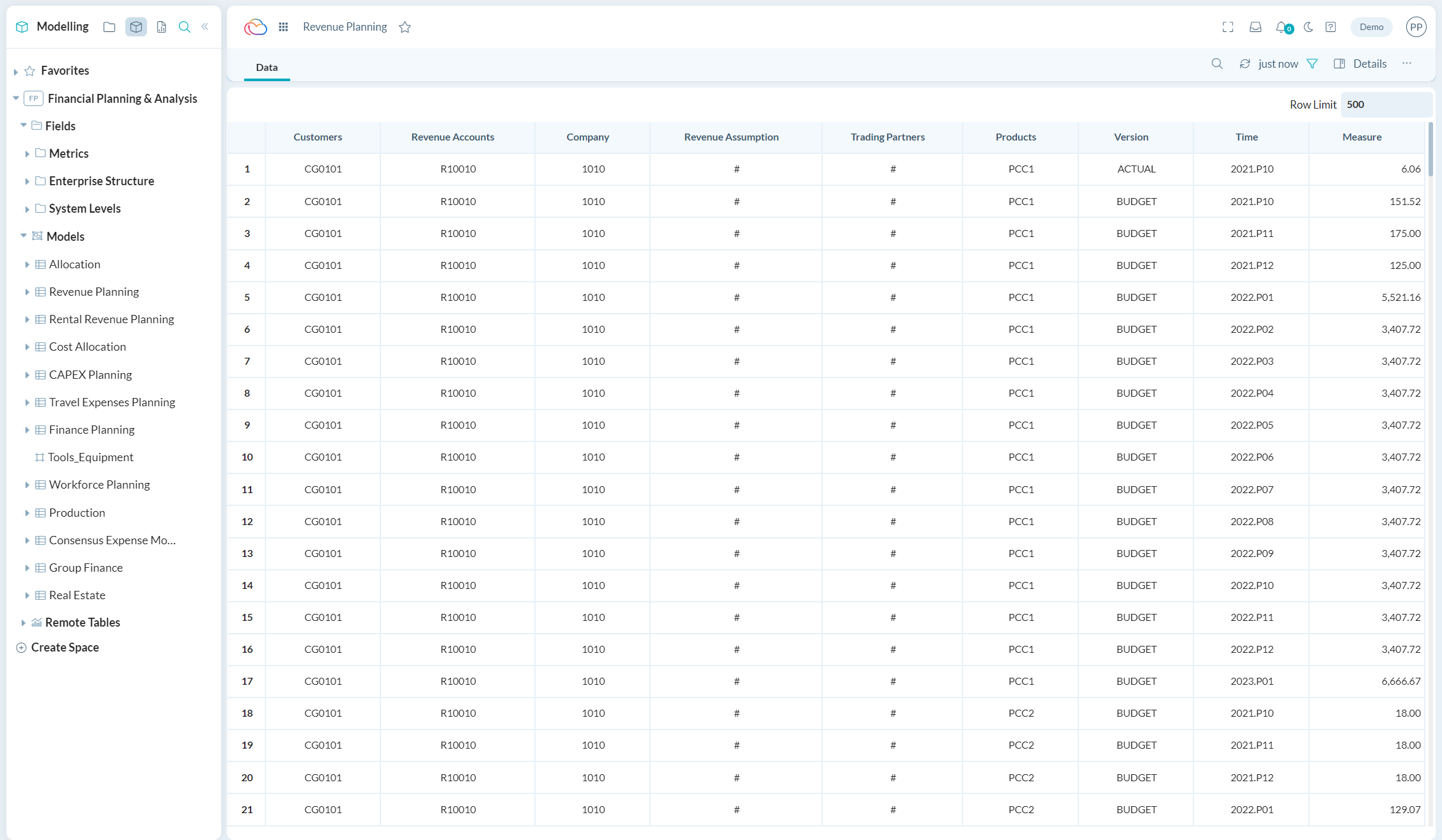 Zeilenlimit: Die Anwender können die Anzahl der angezeigten Zeilen ändern, indem sie die gewünschte Anzahl von Zeilen eingeben, die angezeigt werden sollen.