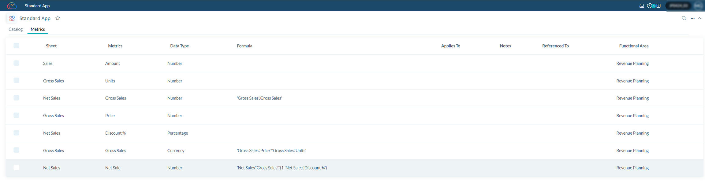 Die neue Kennzahl-Zusammenfassungsliste ist jetzt auf der Katalogseite für App-Inhalte und Funktionsbereiche verfügbar. Diese Übersicht umfasst Kennzahl-Details wie Datentyp, Formel, Notizen, Verweise und mehr. Die Zusammenfassung kann auch exportiert werden.