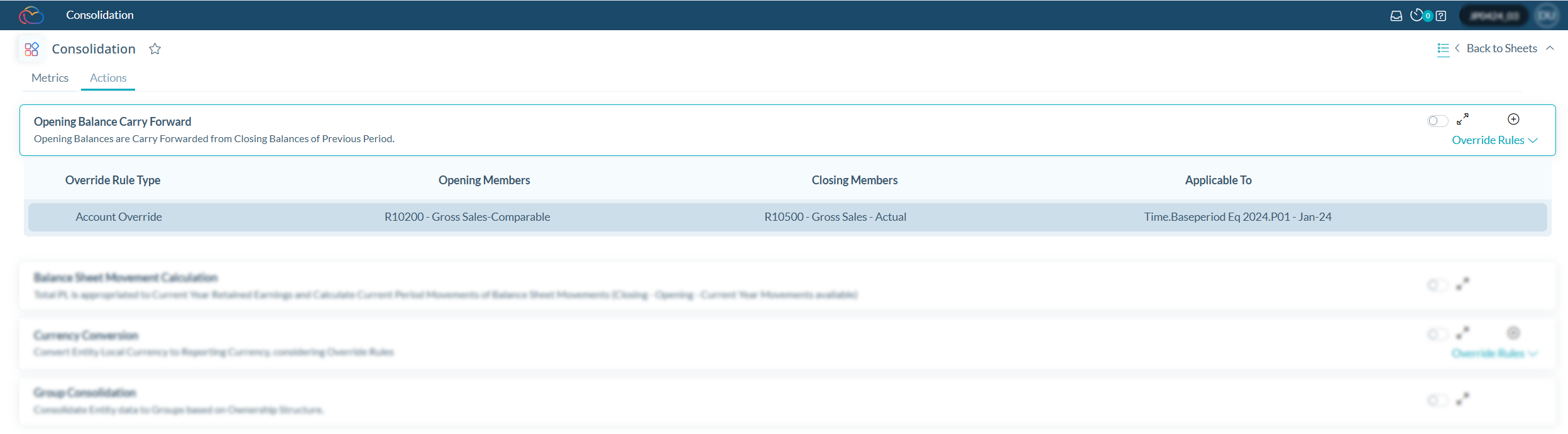 Wir haben mehrere Updates an der Anwenderoberfläche von Konsolidierungsregeln in Blättern vorgenommen, um die Anwenderfreundlichkeit und -funktionalität zu verbessern.