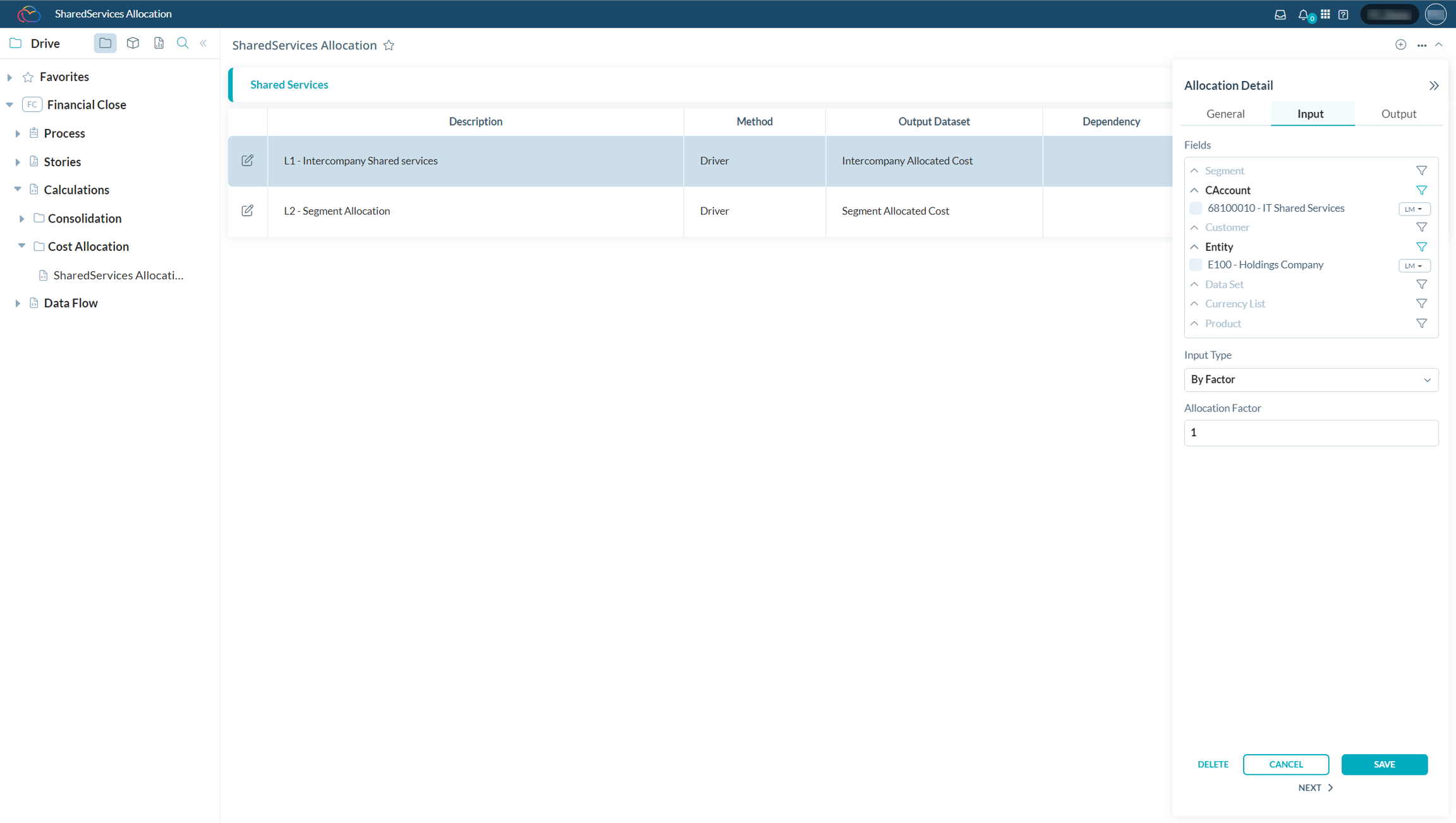 | Zuweisungsmethode | Wählen Sie die Art der Zuweisungsmethode aus, die angewendet werden soll. | Dropdown (Treiber oder Umgliederung) |