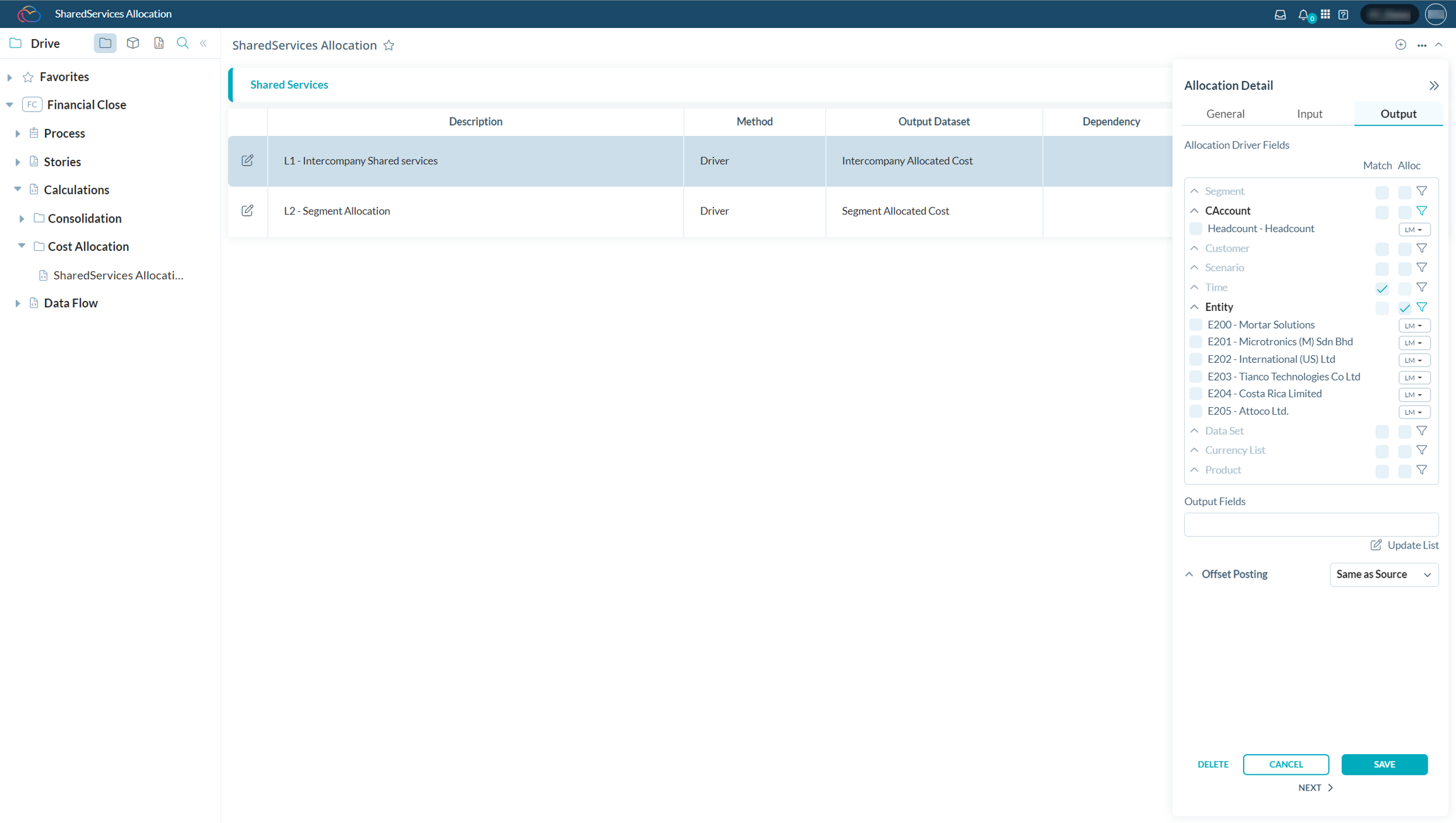 - Ausgabe: Verwaltet die Ausgabedatensatz, Treiber und Verrechnungsdetails, um die Ergebnisse der Zuweisung zu buchen.