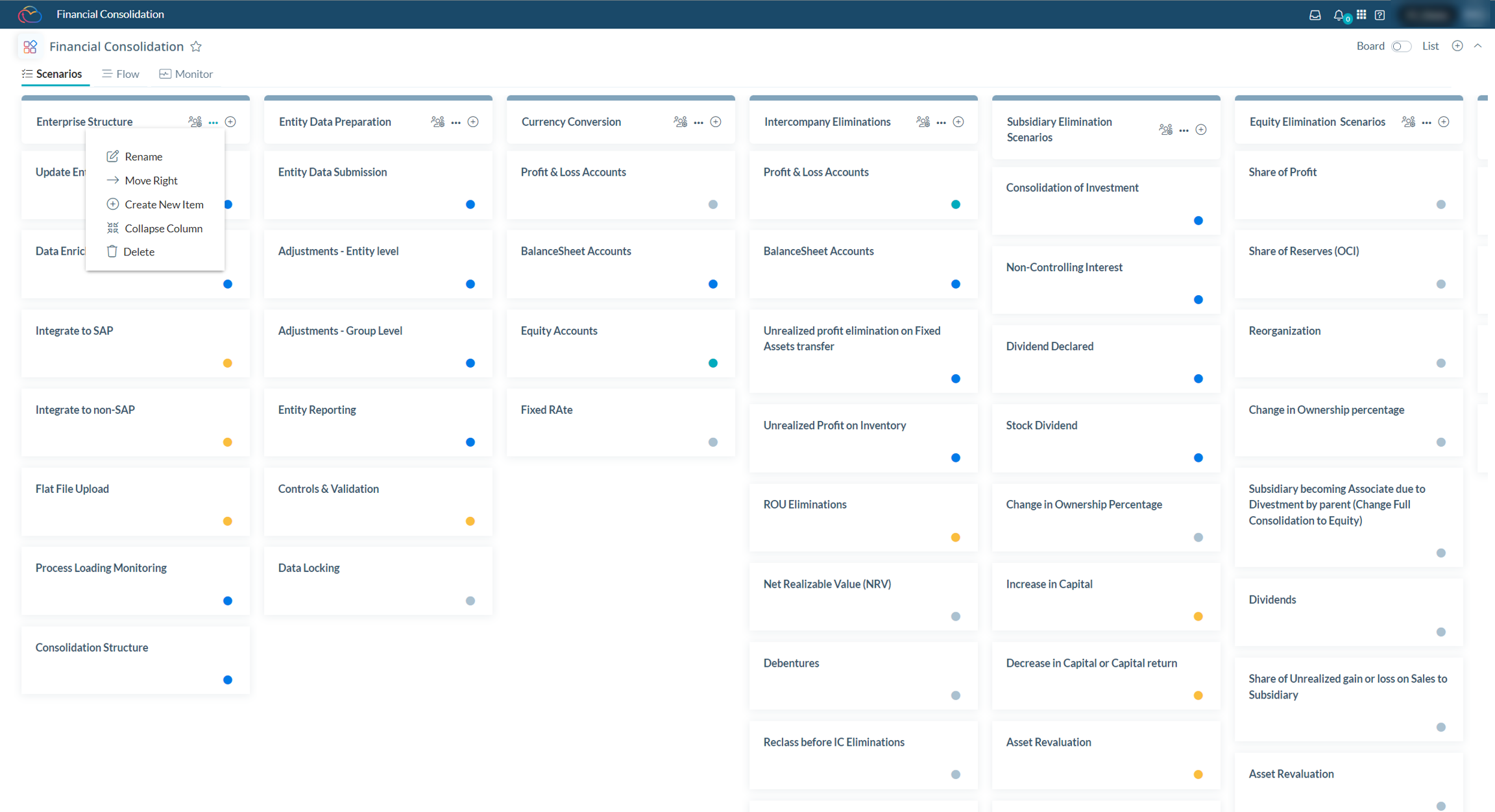 Nach der Prozessinitiierung werden Szenarien, die für einen bestimmten Geschäftsprozess gelten, im Szenario-Management-Dashboard identifiziert und im Prozess gepflegt. Wenn der Prozessverantwortliche jedoch während des Vorgangs neue Szenarien hinzufügen oder bestehende ändern muss, kann er die Szenario-Managementfunktionalität verwenden, um die Szenarien hinzuzufügen oder zu bearbeiten.