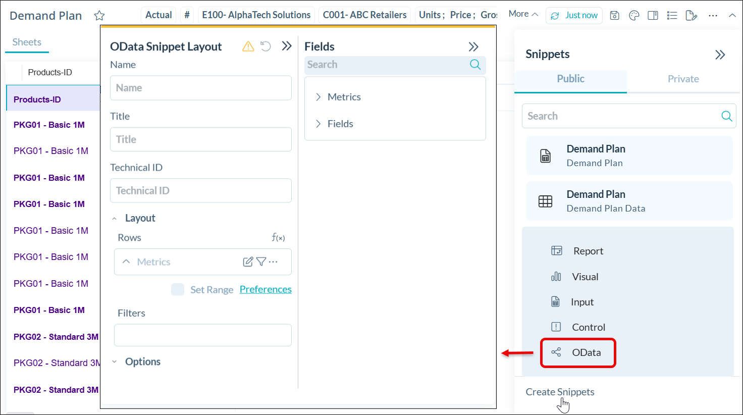 Wie Sie OData-Snippets erstellen können, erfahren Sie unter OData-Snippets.