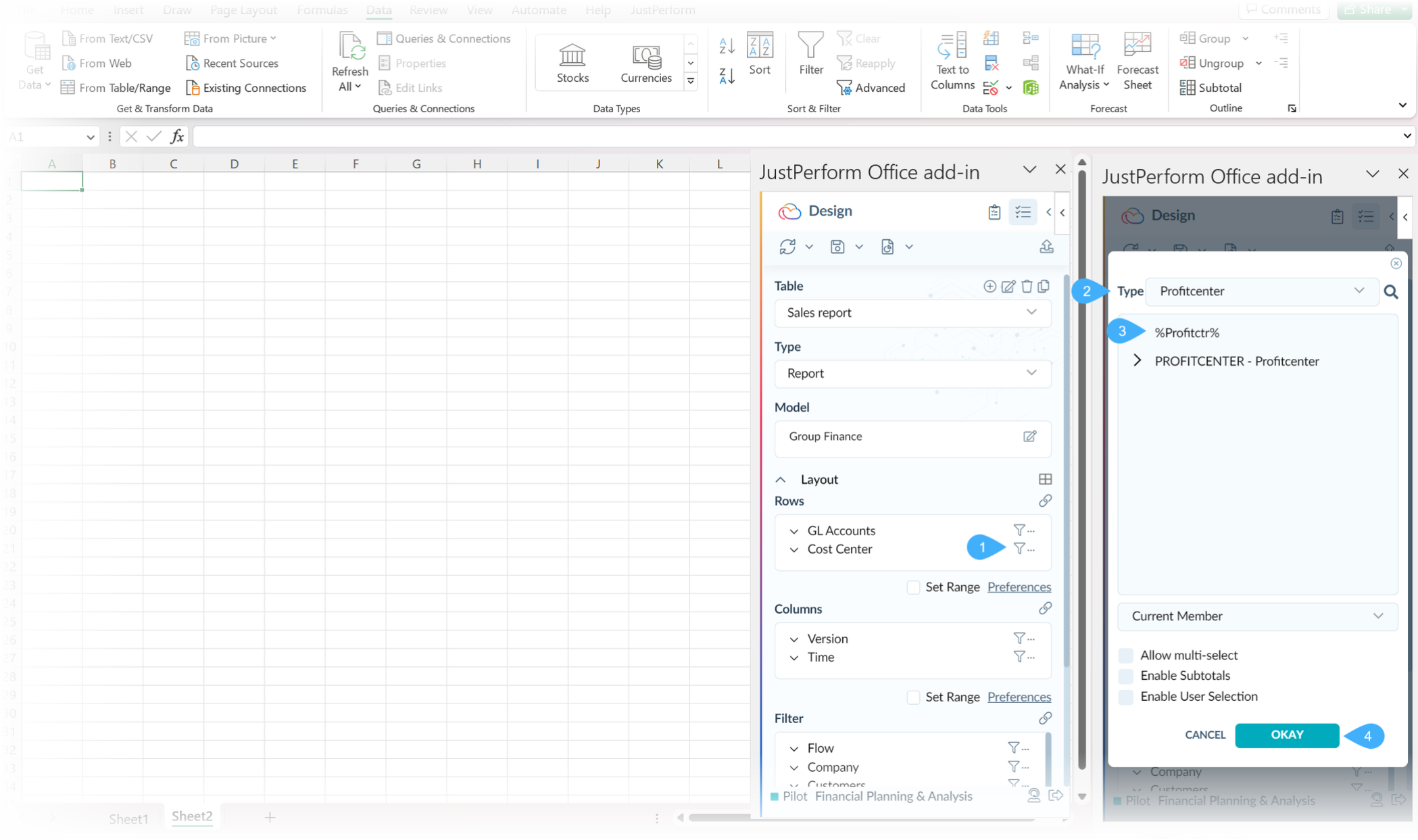 - Wählen Sie Kostencenter-Elementauswahl mit dem Filtersymbol.