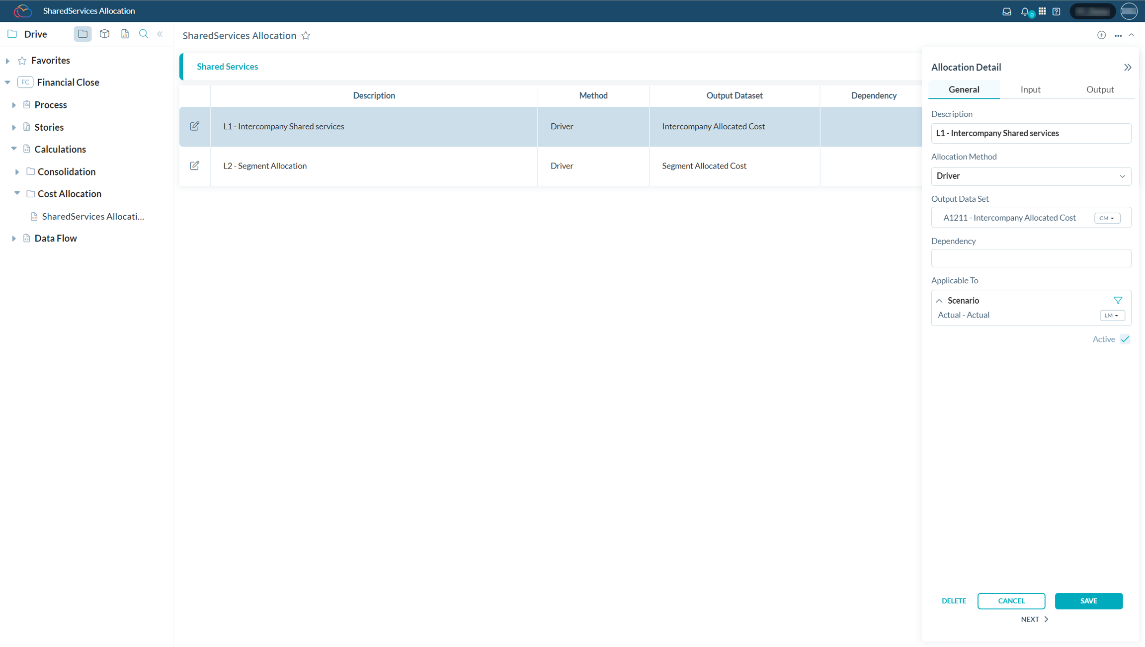 | Zuweisungsmethode | Wählen Sie die Art der Zuweisungsmethode aus, die angewendet werden soll. | Dropdown (Treiber oder Umgliederung) |