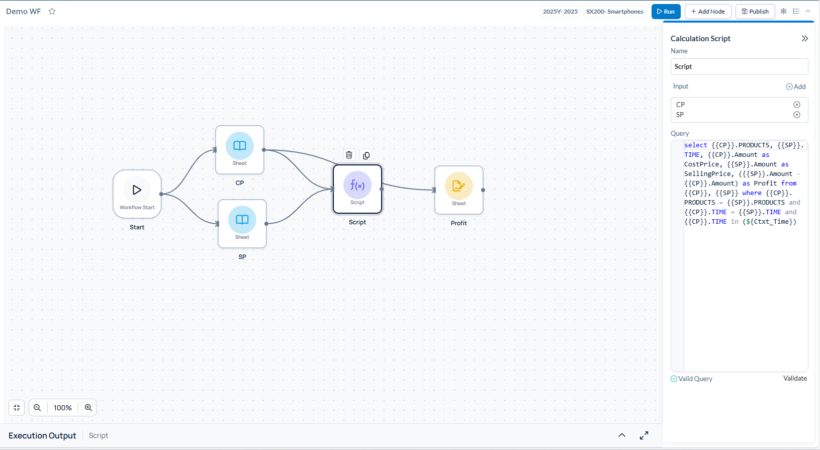 The Script calculation node provides SQL-based data transformation capabilities.