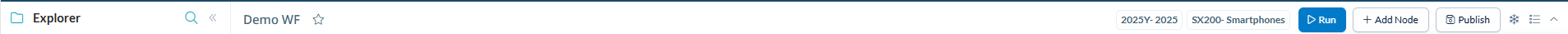 Context member badges display in the Level 2 header showing dimensional selections that apply across the workflow. These badges represent the union of dimensional context from all configured nodes.