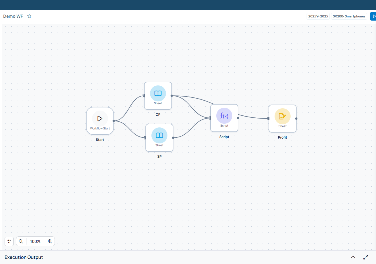 The Execution Output section is located at the bottom of the canvas.