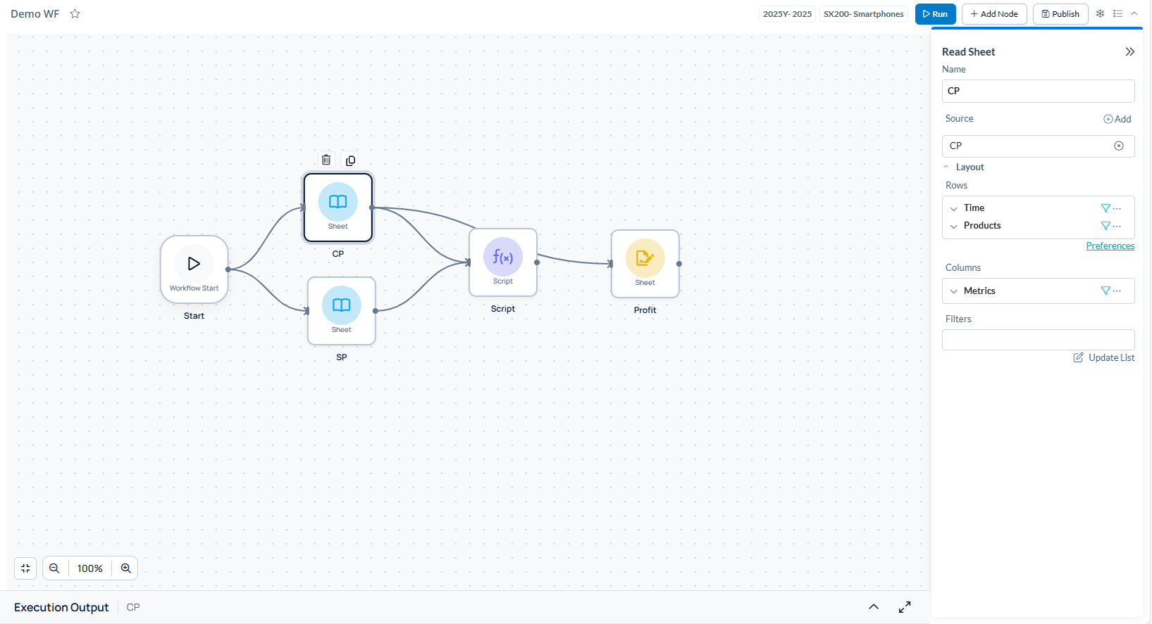 Reads data from sheets including standard sheets, multi-section sheets, and consolidation sheets. |