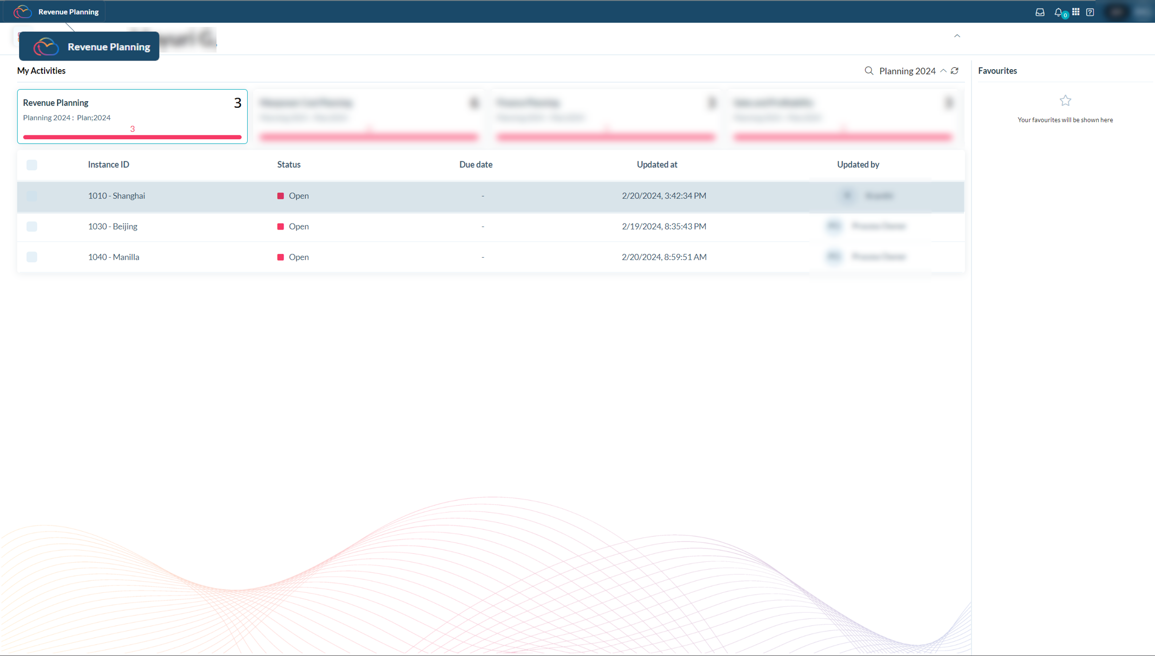 The selected activity name will show in the Level 1 header, beside the icon. On the right of the Level 1 header, the instance selection, version, and time selection will be displayed first, followed by the activity status and the activity panes, which will display the list of tasks, their status, and activity details. Clicking on a task will direct the user to the item linked to the task.