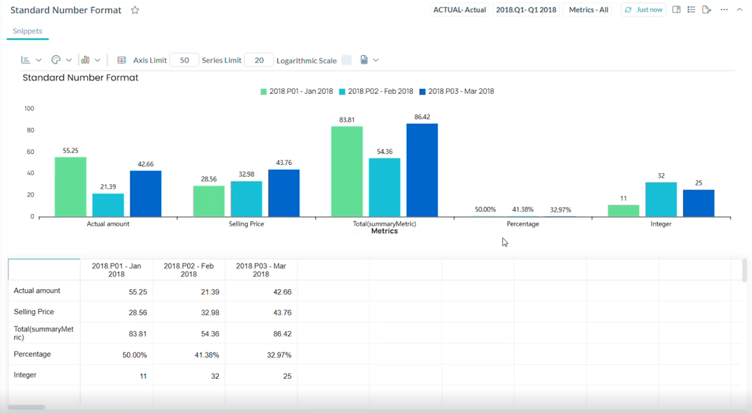 Les Visual Snippets sont améliorés pour appliquer un formatage standard des nombres aux étiquettes de données en fonction du type de données métriques.