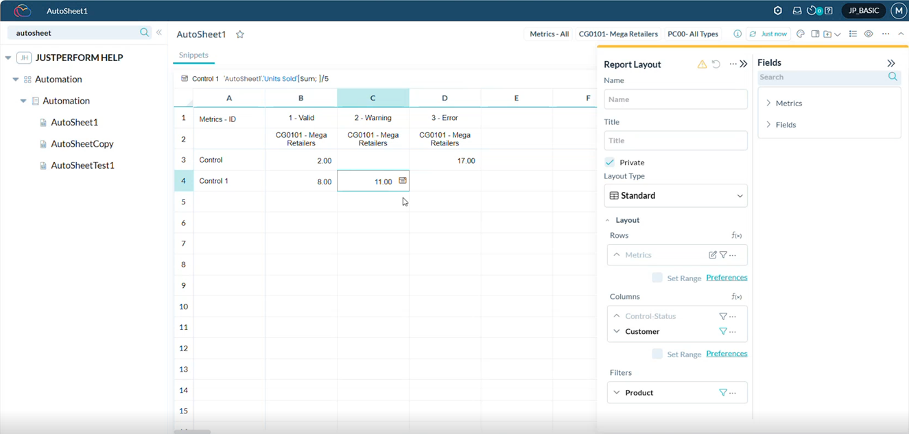Les cellules valident désormais les données saisies en fonction du type de métrique associé, ce qui permet d'éviter les entrées non valides.