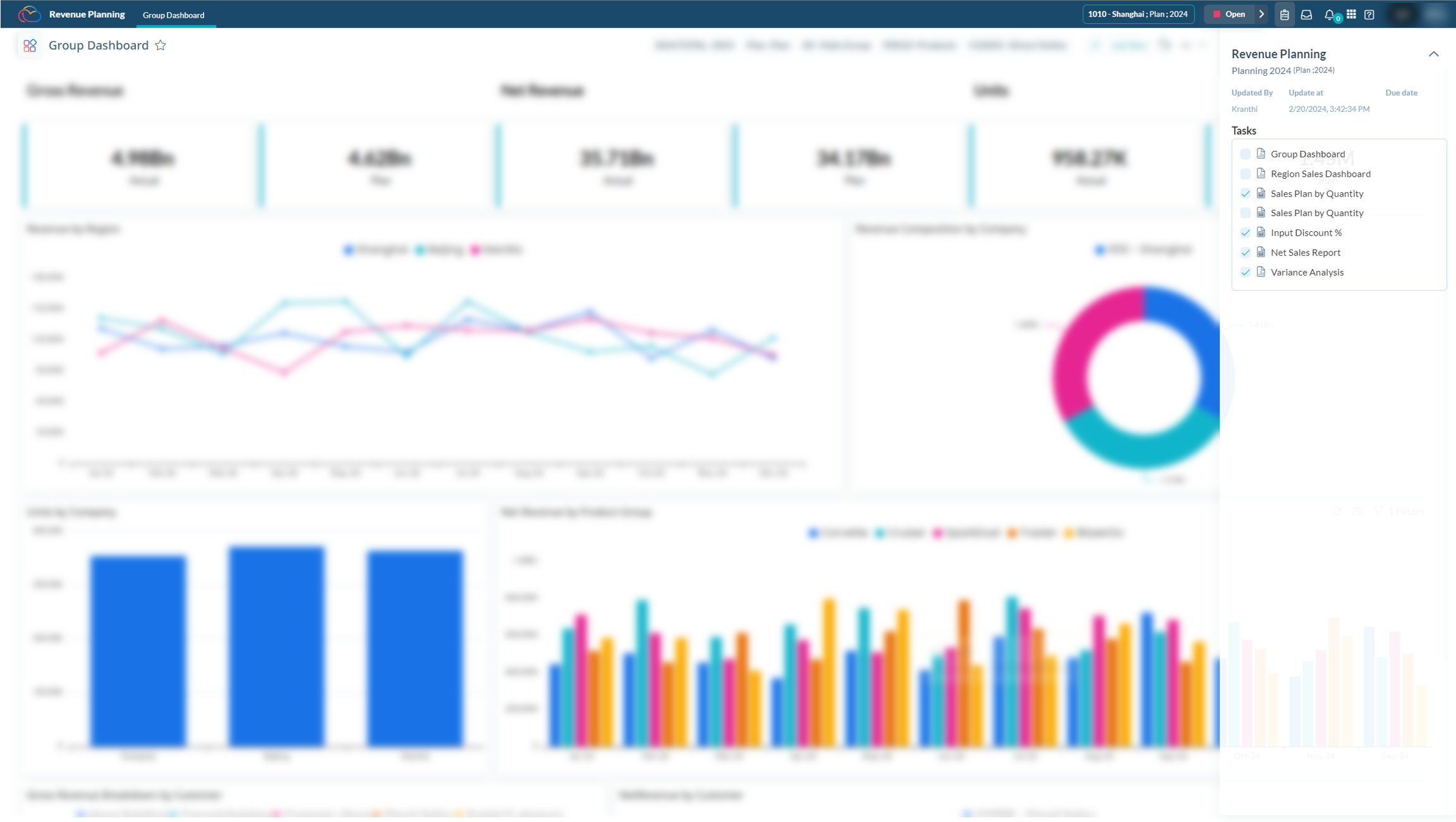 Le nom de l'activité sélectionnée s'affichera dans l'en-tête de Niveau 1, à côté de l'icône. À droite de l'en-tête de Niveau 1, la sélection d'instance, la version, et la sélection de temps seront affichées en premier, suivies par le statut de l'activité et les panneaux d'activité, qui afficheront la liste des tâches, leur statut, et les détails de l'activité. Cliquer sur une tâche dirigera l'utilisateur vers l'élément lié à la tâche.