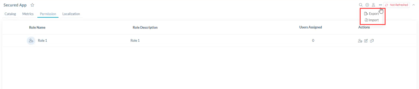 JustPerform prend désormais en charge les fonctions d'exportation et d'importation pour les rôles dans les applications sécurisées. Lorsque vous marquez une application comme sécurisée, vous pouvez accéder à un nouvel onglet Permissions qui comprend des options d'exportation et d'importation pour les configurations de rôles. Cette capacité permet aux administrateurs d'exporter les paramètres de rôle d'une application sécurisée et de les importer dans une autre, rationalisant ainsi la gestion des rôles sur l'ensemble de la plateforme.